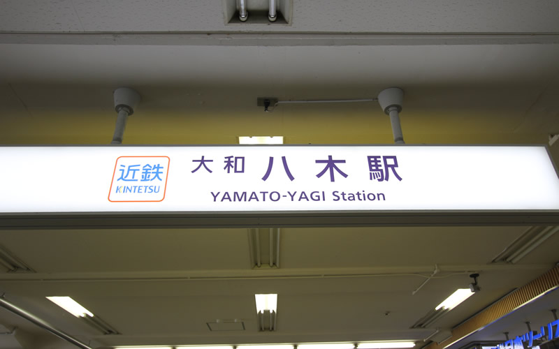 八木駅より近鉄大阪線沿いに東方向へ歩くと、看板が見えてきます。