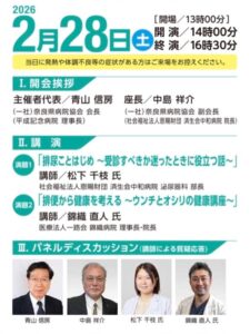 2月28日に奈良県橿原文化会館にて開催されました『令和7年度医療と健康について学ぶ公開講座』に講師として招聘していただきました。